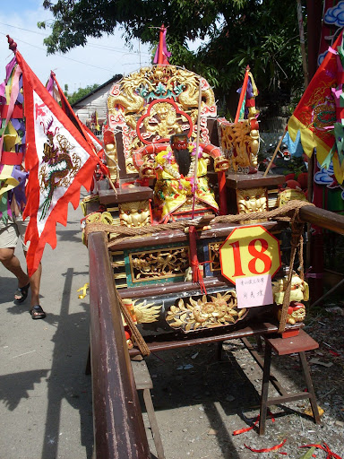 没有看到大胜爷金身的?... 他写错了,应该是大圣爷乩身,后面黑色的是张公圣君乩童和三太子乩童。太子蛮凶一下。 |