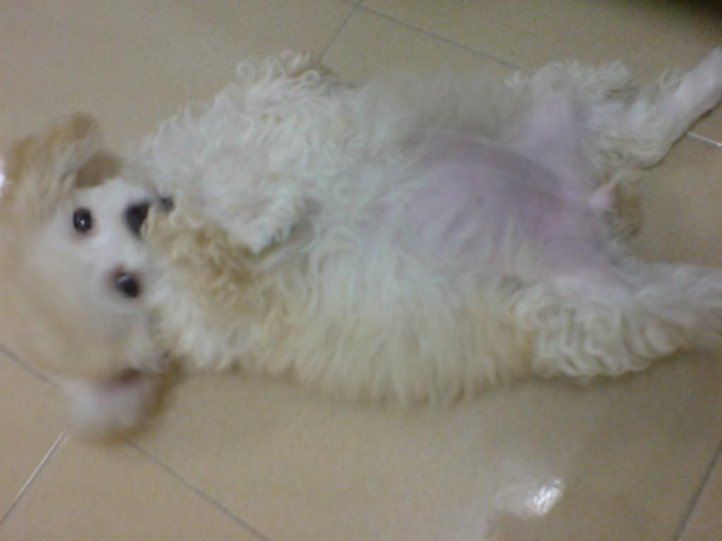 長毛的時候哦 真的很像蠟筆小新裏面的小白 一團棉花糖 XD 它的拿手好戲就是拖地