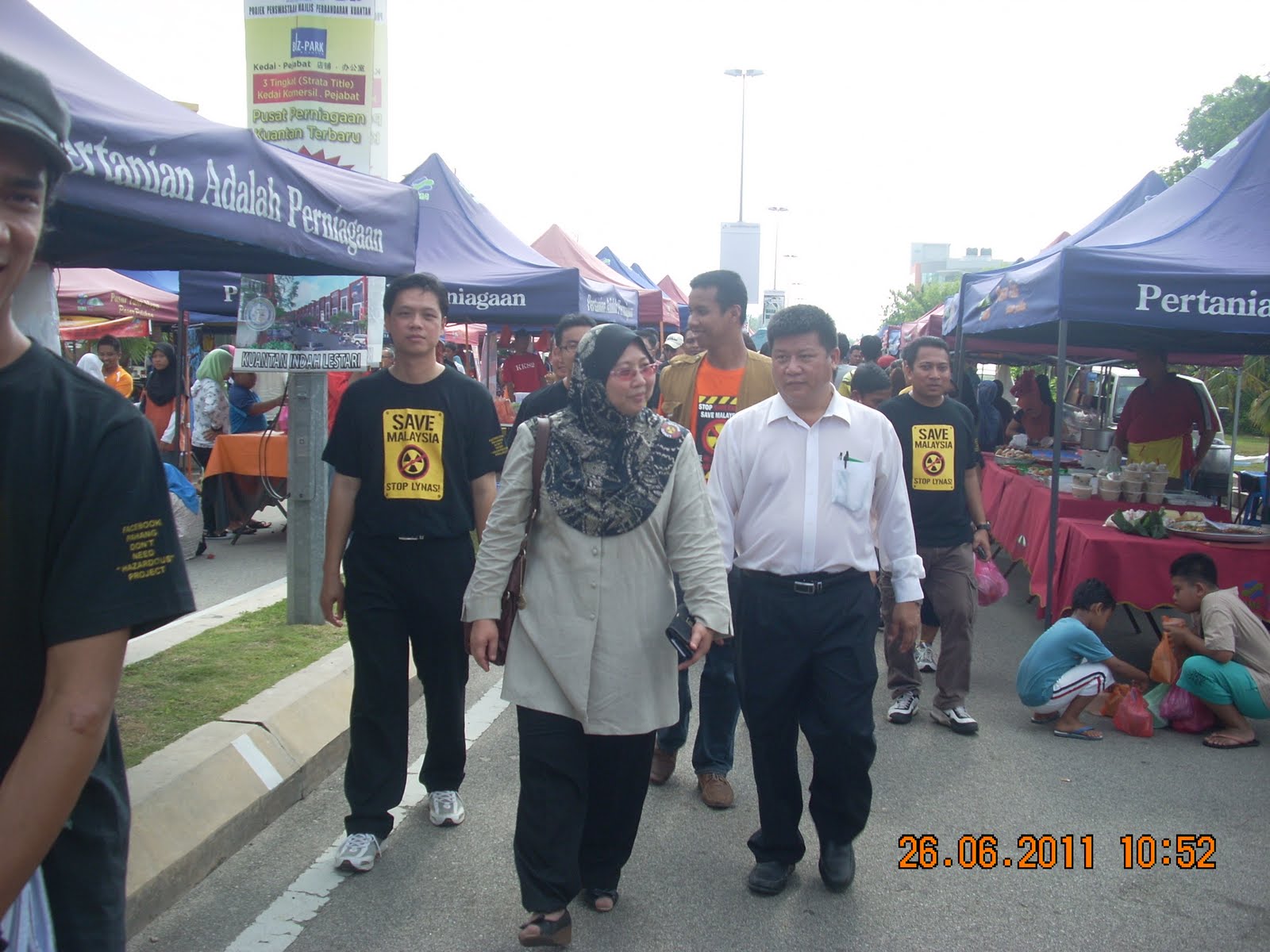 Sekitar jam 10.30 pagi kenderaan yang membawa Ahli Parlimen Kuantan, YB Fuziah Salleh dilihat memasuki kawasan dihadapan Stadium Darul Makmur. Terdapat maklumat, program himpunan bantah Lynas juga akan diadakan oleh Parti Keadilan Rakyat (PKR) di kawasan stadium. Akibat sekatan jalanraya yang diadakan untuk menghalang mereka, maka lokasi telah diubah ke kawasan Pasar Tani Mega dihadapan Restoran The Oasis, Malay Town. Beberapa orang pemimpin kanan PKR Kuantan juga dilihat mengekori YB Fuziah. Turut hadir ialah YB Chang Ming Khai (ADUN Simpang Pulai, Perak) dan beberapa orang anggota AMK Pahang. Rombongan seramai lebih kurang 50 orang terbabit bergerak bersama YB Fuziah beramah mesra dengan orang ramai dan peniaga di pasar tani terbabit. Mereka turut memakai baju dan kain rentang "Stop Lynas". Program berakhir sekitar jam 12.30 tengahari dengan sessi bergambar di pintu masuk kawasan terbabit (pasar tani). Sebelum beredar satu sidang media ringkas telah diadakan di kawasan ini. Kelihatan beberapa orang pegawai FAMA memantau dan mengawasi pergerakan mereka. Pihak polis tidak kelihatan di kawasan itu, mungkin mereka tersalah strategi atau tidak jangka lokasi boleh bertukar ke kawasan itu.