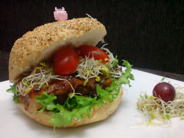 鸡肉汉堡 上次看到KITTY阿猫用这个面包做汉堡, 我就去TESCO找