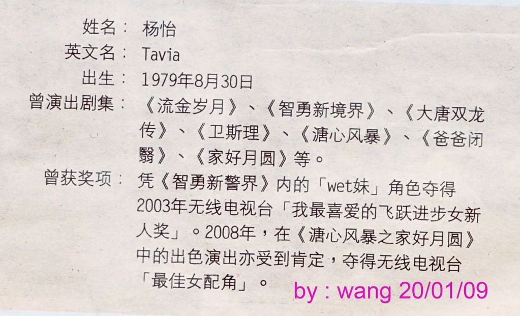 杨怡的成名之路很具有代表性,她几乎可以代表绝大多数从艺员训练班走出来的TVB女星的发展历程。在长达6年的龙套生涯里,她是《状王宋世杰》里那个作背景板的尼姑、还是《澳门街》里的问路女孩,还是《陀枪师姐2》里的女播报员、也是《美丽人生》里的小太妹……当同一届训练班的同学林峰已经小有名气的时候,她仍只不过是《再生缘》里的苏映雪。然而正是这段日子里打下的基础,才让她在日后一点点绽放出夺目的光彩。 n#b&o |