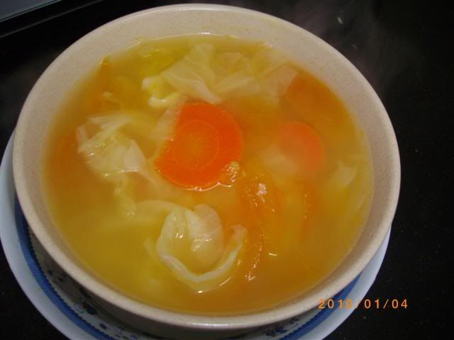 前天煮了曾煮过的罗宋汤~这次没有用tomato paste~只用包菜、蕃茄和红萝卜~很甜~不错~