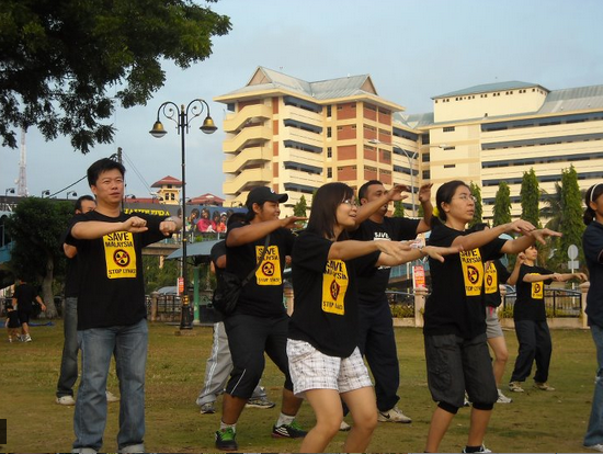 KUANTAN, [size=85%]24 Julai - NGO Save Malaysia Stop Lynas telah mengadakan satu program Hari Mesra di Taman Esplanade (Sungai Kuantan), dihadapan Hospital Tg.Ampuan Afzan hari ini. Program yang bertemakan "Kuantan Yang Indah, Sarap Nasi Lemak Bersama" itu telah dihadiri oleh lebih 500 orang peserta. Orang ramai bersenam bersama seawal jam 7.00 pagi sambil diiringi oleh lagu "We Are The World". Selepas bersenam, masing-masing kemudian bersarapan pagi "Nasi Lemak" di Kak Nor Corner, benteng sungai Kuantan. Nampaknya, biar pun kerajaan telah memutuskan bahawa projek pembinaan kilang memproses rare earth Lynas Corporation itu tidah berbahaya dan mendatangkan risiko besar kepada orang ramai, namun NGO terbabut terus mengadakan kempen-kempen mereka. Soalnya, apakah kempen sebegini akan diteruskan sampai bila-bila agaknya?. Jika ini berlaku, apakah kerajaan akan berdiam diri?. Kami menjangkakan sudah pasti operasi besar-besaran terhadap Save Malaysia juga akan dilakukan sama seperti Bersih 2.0 baru-baru ini. Kemungkinan besar, larangan memakai baju T-Shirt Save Malaysia turut akan dikeluarkan atas tindakan pihak berkenaan mutakhir ini. Inilah yang pasti akan berlaku nanti.