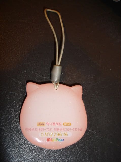 在韩国有这种很可爱的pass哦,就像是我们用的touch&go卡,可以用来搭巴士和地下铁,还有很多不同的形哦, 把它放在钱包里然后上车时didi就可以了哦