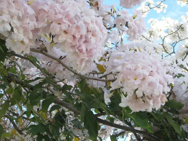 大馬櫻花是一般的遮蔭樹木,每年只開一季花,花期長達3個月,目前正是花盛開時期。由於樹大花朵稠密,因此大馬櫻花盛開景色迷人。