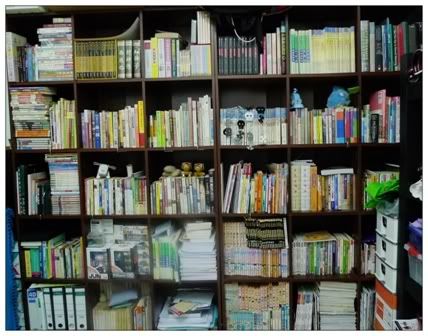 没办法。。书橱满了。。(没有真正数过,保守估计藏书2000本)。。