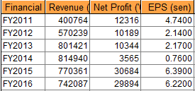 2015年和2016年基本持平,虽然2016年营业额和净利稍微下滑,但是差距并不大。