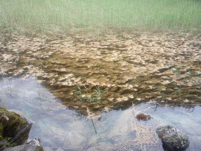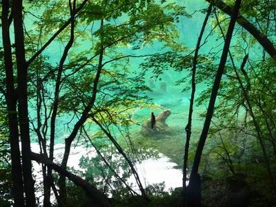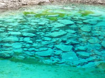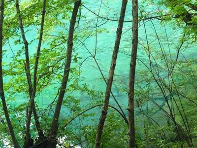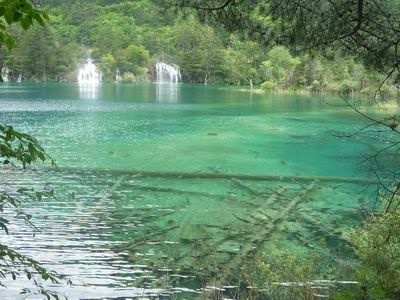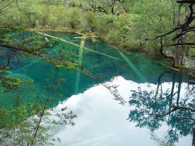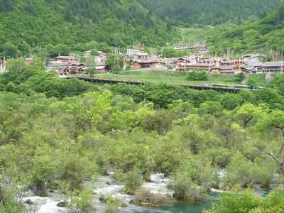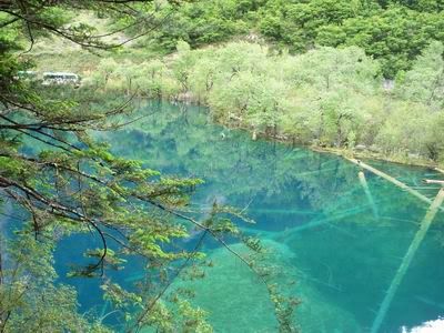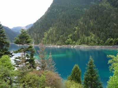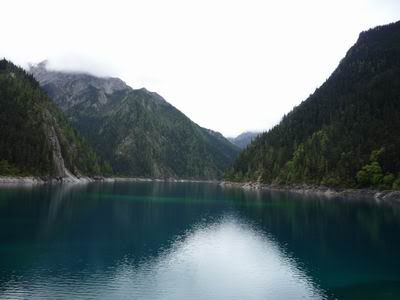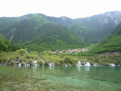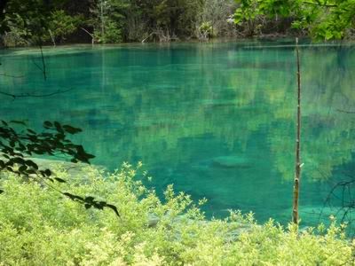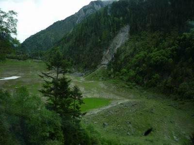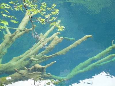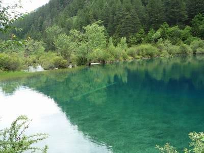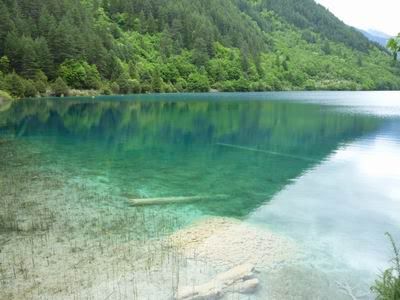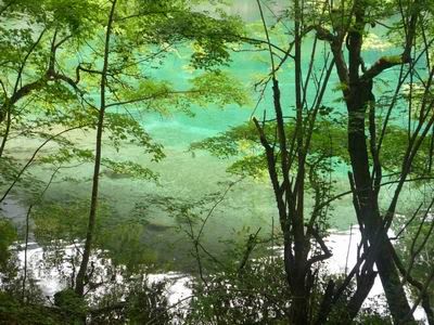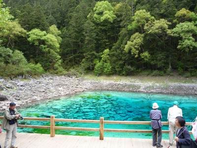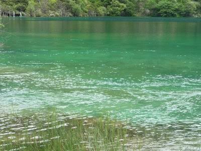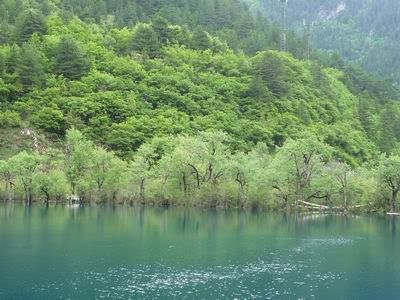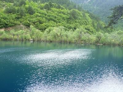 旱季的九寨沟,最明显就是在则渣洼,所以长海和五彩池都大大的露出河床,而上下季节海就简直是枯干一片。河床上有很多的摩哆的痕迹。