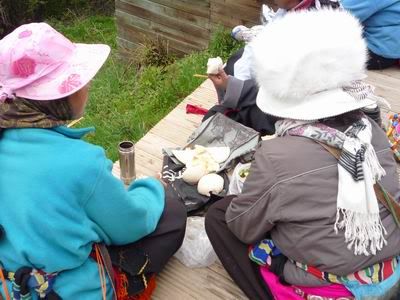 我们两人买了一个韭菜青稞饼 , ¥4。 还是沟口的藏族老婆婆的烤青稞饼好吃! |