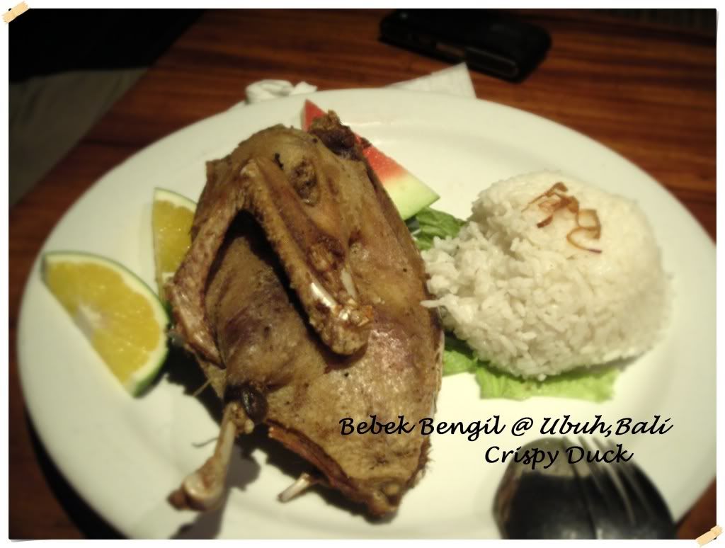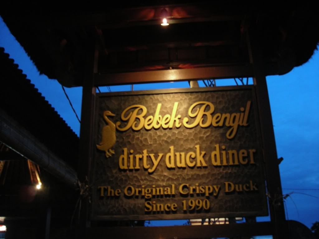 走完今天的行程已經將近7.00pm 了。我們趕緊 check-in Green Field 後﹐就先讓司機回去。我們放好行李就趕緊去醫肚子了。我們選擇了一家靠近我們酒店又有名的 “ Bebek Bengil” , 又名 “骯髒鴨: Dirty Duck”