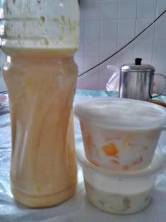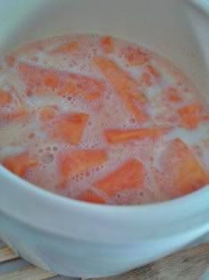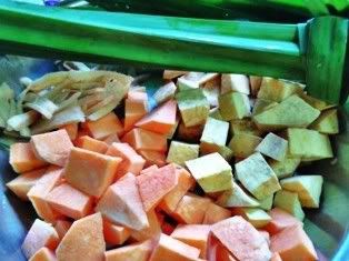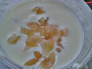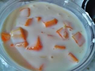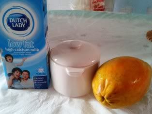 1。直接炖热切好的木瓜+牛奶 (木瓜依照个人喜好,可以加糖,蜜糖)