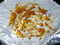 我还有把多出来的焦糖液制成糖饰品,用汤匙把焦糖液不规矩的放在鋁箔纸上就可以了!