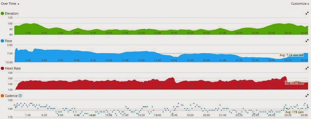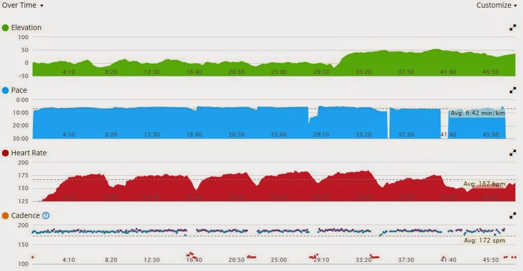 赛前除了定下目标和每公里的配速(55分钟 // 5:30 配速)就什么也没准备了,然而证明这是一个错误的选择。