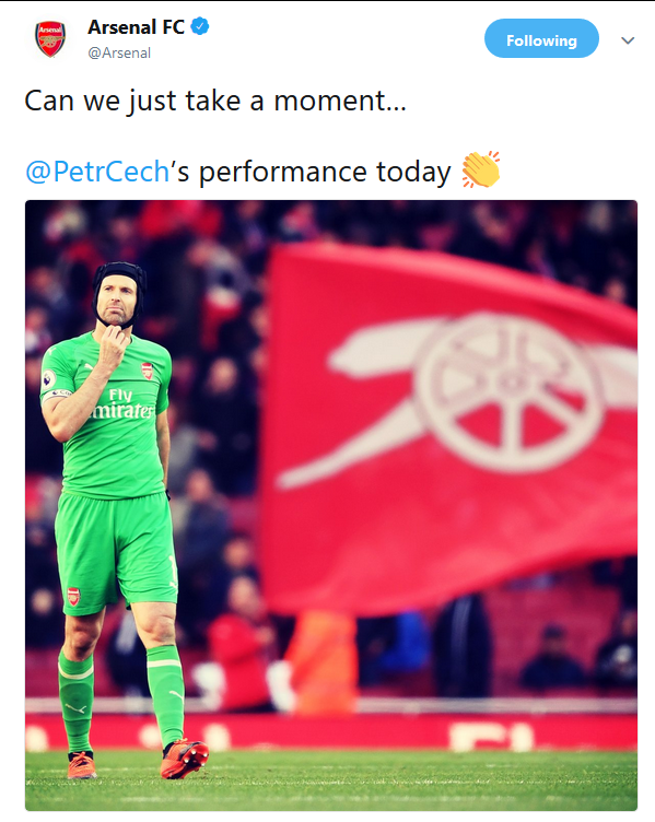 阿森纳3-0战胜了沃特福德,酋长球场的主角,不是厄齐尔,不是奥巴梅扬,而是守门员切赫。