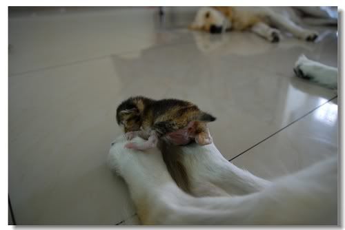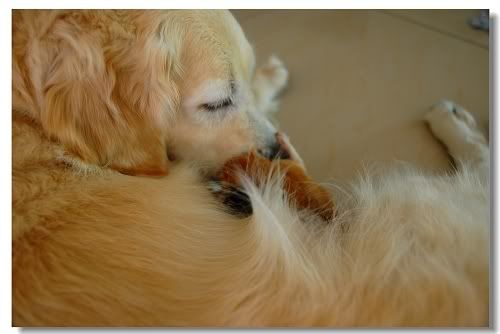 kero就是这样..对小狗忍让到不得了...就算小狗爬到它头上或者一屁股坐上它鼻子...他也无所谓
