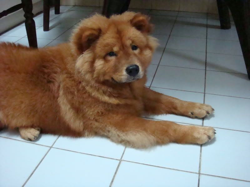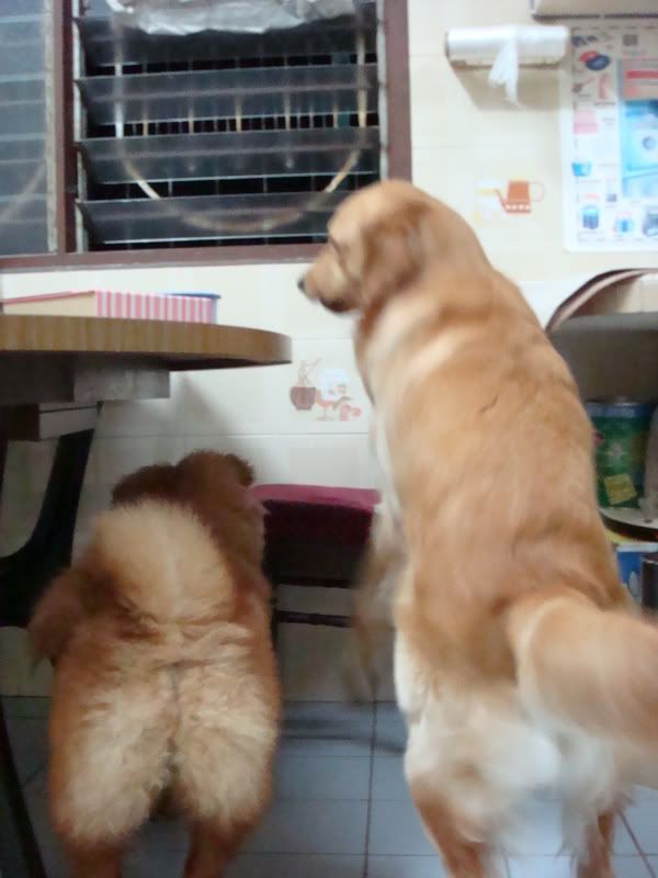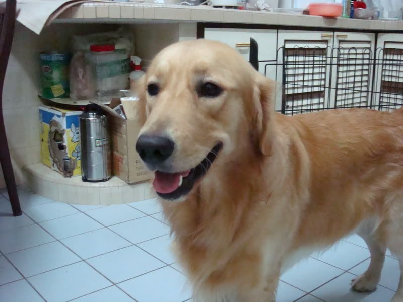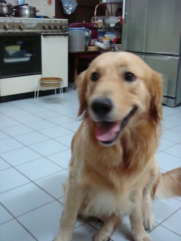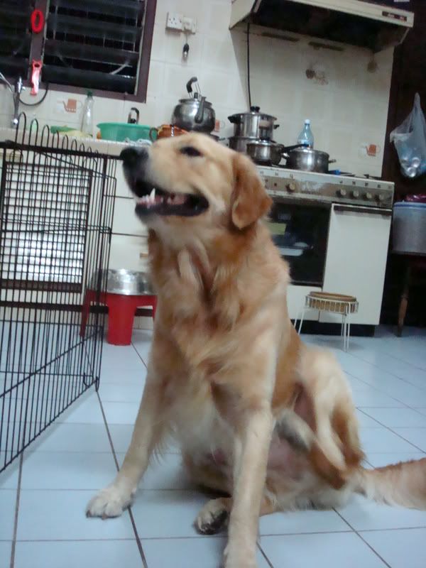 我也是教了很久,不是每天教啦,有时记的就教,有时忘记了。我是把东西放在他头那,然后一只手捉主他整个嘴不给他动,然后就叫他不要动,然后就数 1 2 3 4 5然后放手叫他吃,然后慢慢放松你捉主他的嘴的手到他可以顶住为制,这动作好像很难训练,之前我教到要放器了,谁知一天我叫他不动,他会了。现在他可以数到10。 |