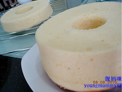 这个是水蜜桃口味的优格戚风蛋糕,做了2个,原本想拿1个去送人的,但是烤好后拿出来,倒扣时2个都跌了下来!哈哈哈~