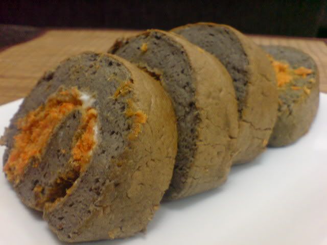65度巧克力肉松蛋糕卷 觉得做出来的巧克力蛋糕怪怪的 不知道为什么, 我觉得我就是一直做不好巧克力口味的蛋糕 不过里面夹的是肉松 算好吃啦