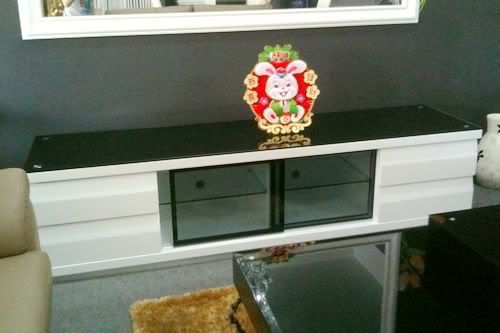 沒有拍照哦!那個白色櫥是放在門口的~我是覺得不錯啦。還有樓下有一張TV Cabinet黑色有玻璃的也很漂亮。simple and nice。 |