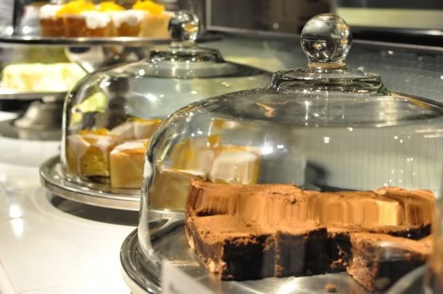 各款陳列在玻璃櫃,托盤里的蛋糕, 很有外國deli的feel