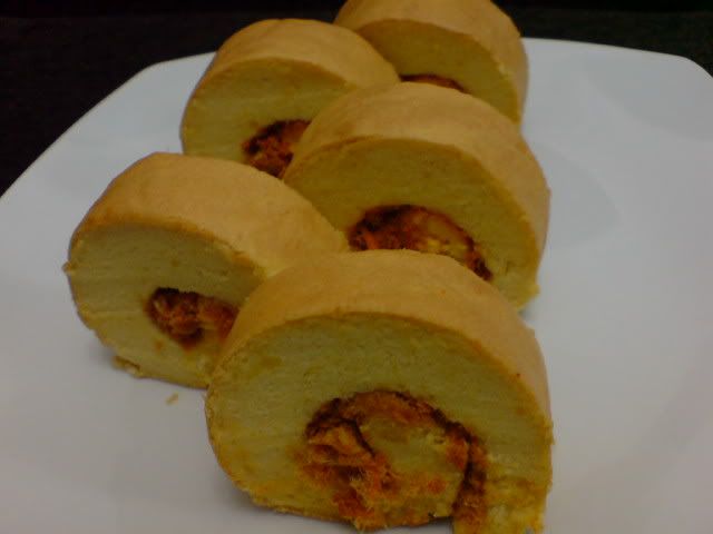 橙味肉松蛋糕卷 发现放肉松的蛋糕实在很好吃 变变口味 就成另一款好吃的蛋糕