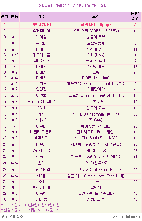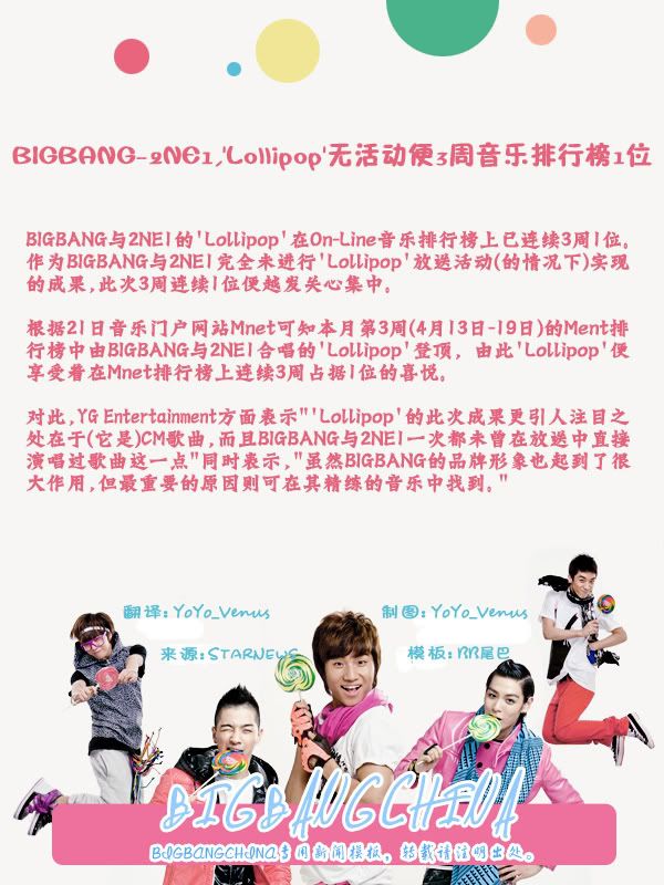 BIGBANG-2NE1,'Lollipop'无活动便3周音乐排行榜1位