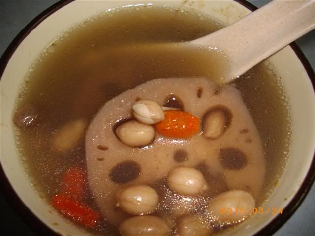 我也来喝莲藕汤。。。。最近很喜欢喝汤的,所以也时常煲汤来喝,不过都是买现成的药材汤料。 |