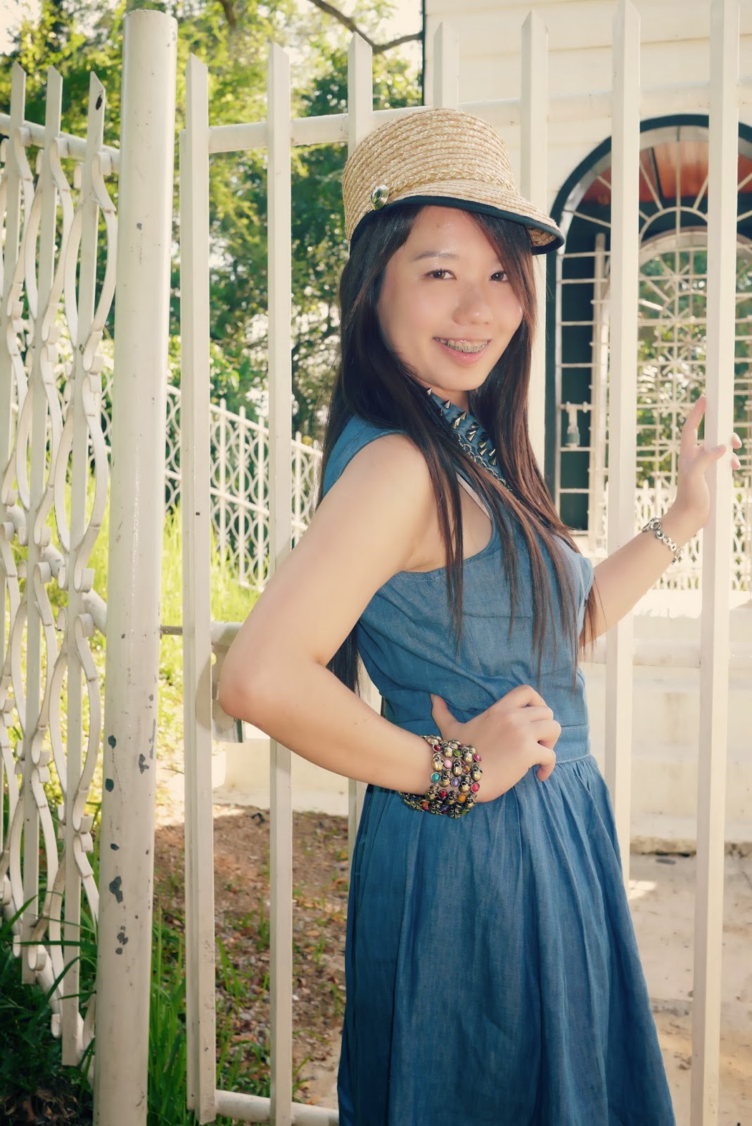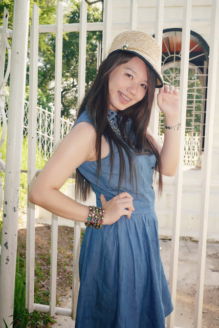 这一身装扮是不是和我平时的装扮看起来有些不同哩, 平时的我爱走复古路线,穿上牛仔裙后增添了不少少女味,感觉还挺不错的!;p