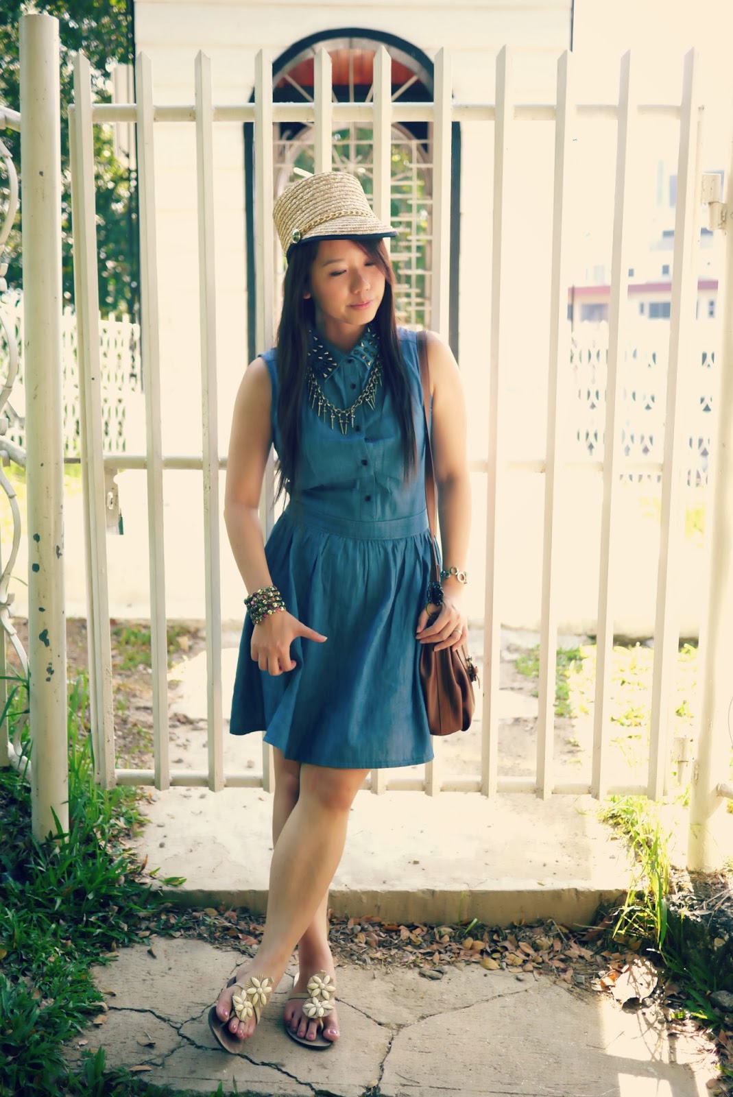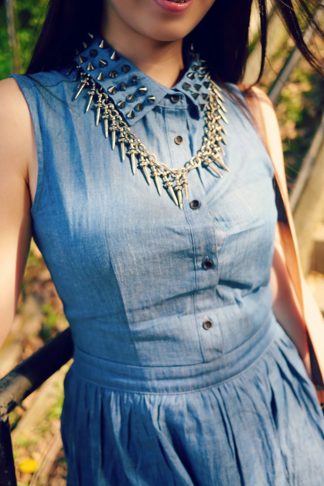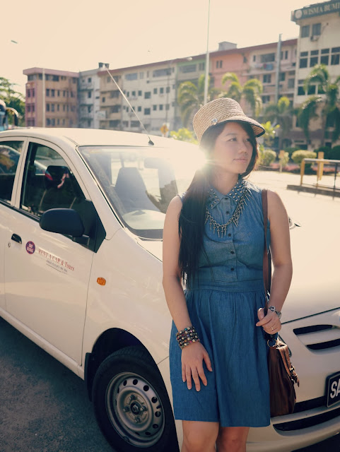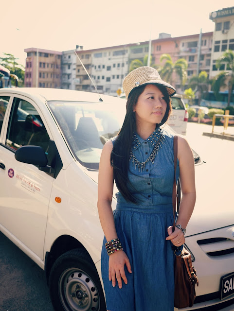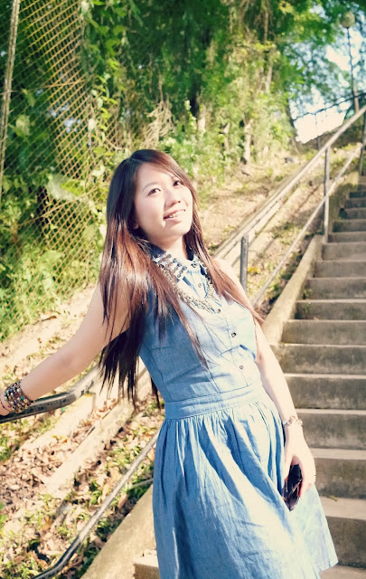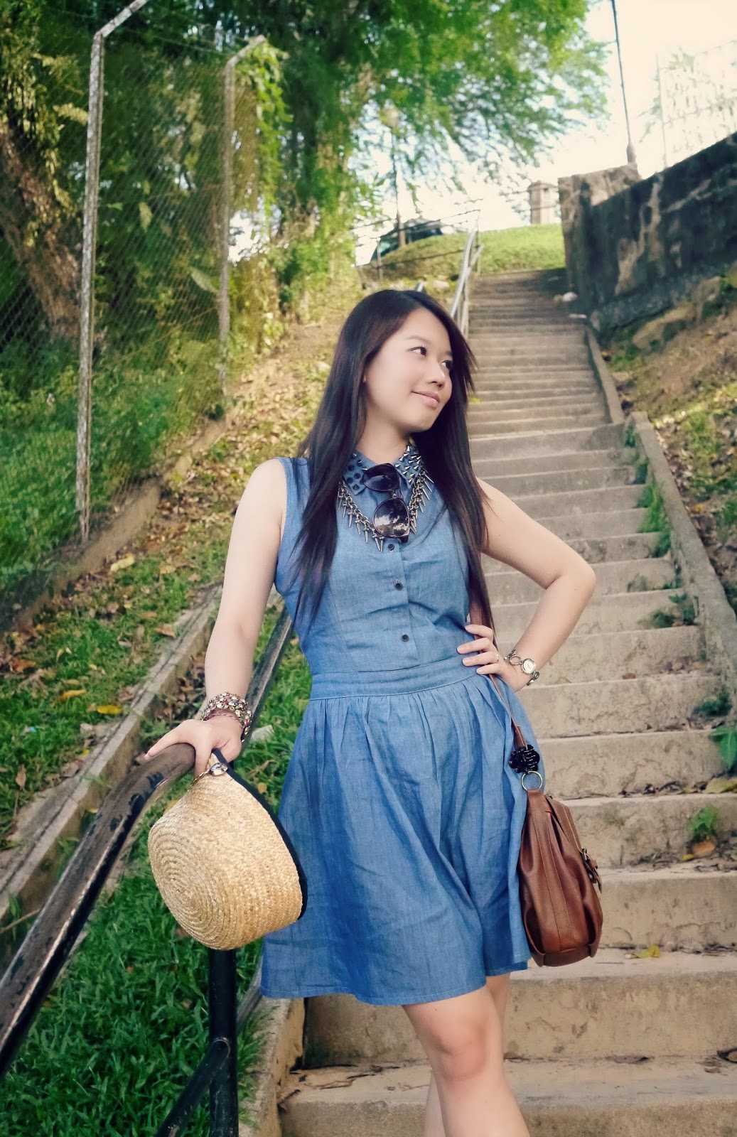 幸好达达在前一天还挪出时间陪我去逛街才买到我想要的裙子。 另外一个原因是新公司在八打灵一带,从达达家去会比较近, 所以现在一个星期有几天都暂住在达达家, 而我也因工作没有时间回家拿换取衣服, 只好趁逛街一次过买新衣服带去沙巴。 今天要分享的柳钉牛仔裙也是当天的战利品之一哦!