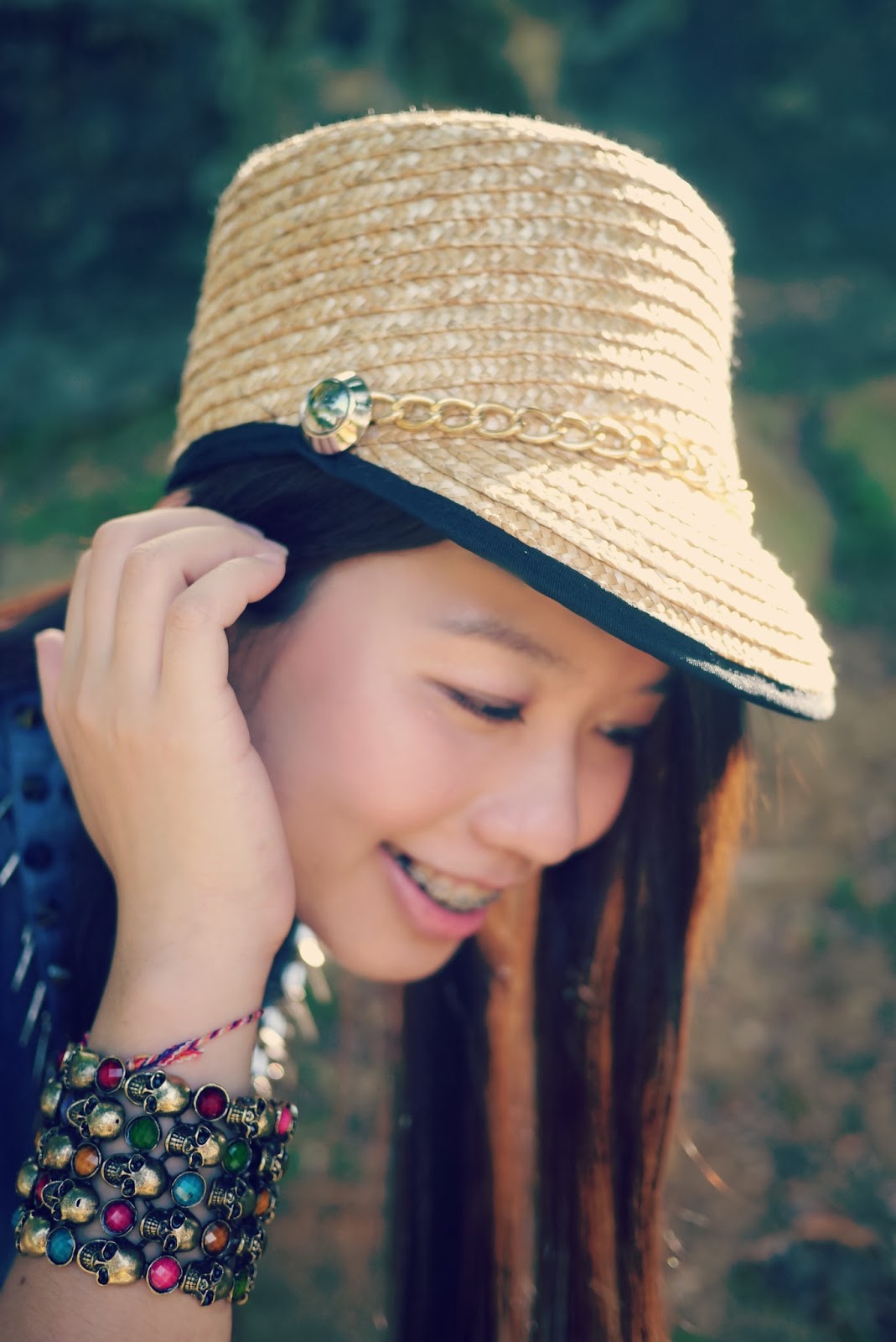草帽搭配牛仔裙更显利落俏皮的风格, 很适合我想要营造的轻庞克风穿搭。