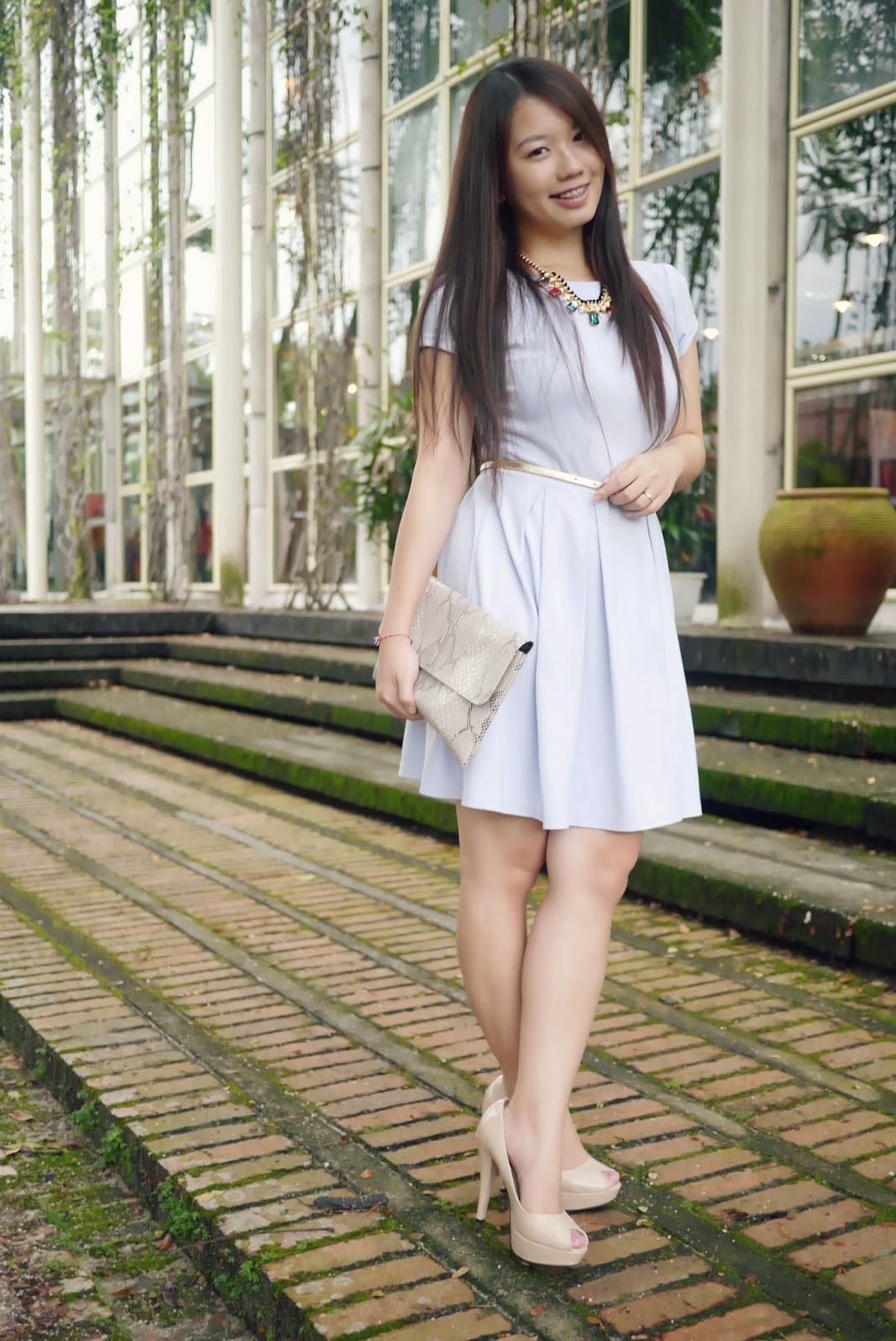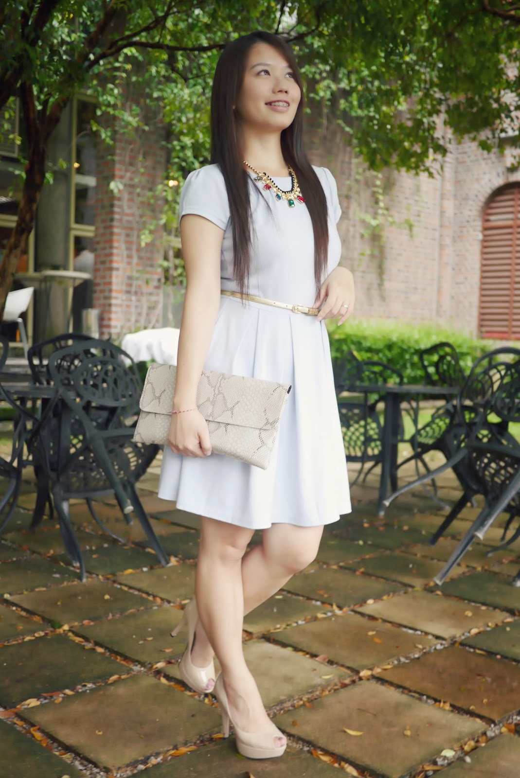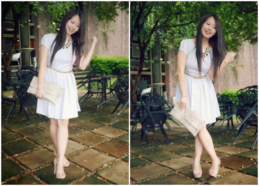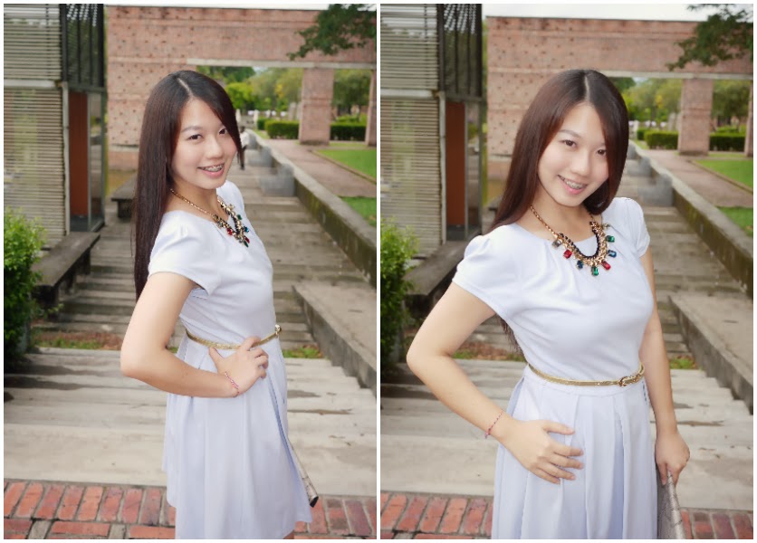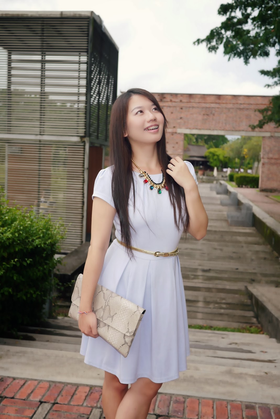 比比的 时尚日记 ❤ 小露性感白色小洋装 + 粉彩水晶质感项链