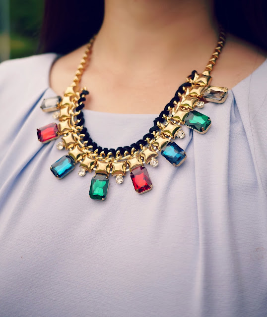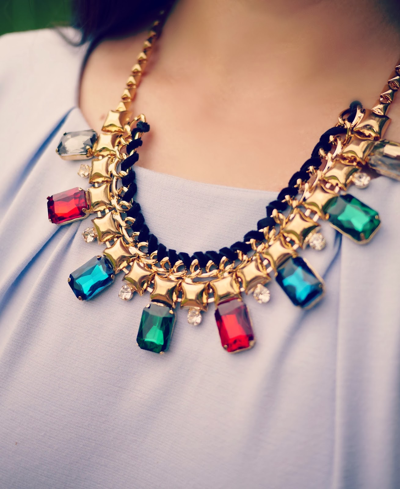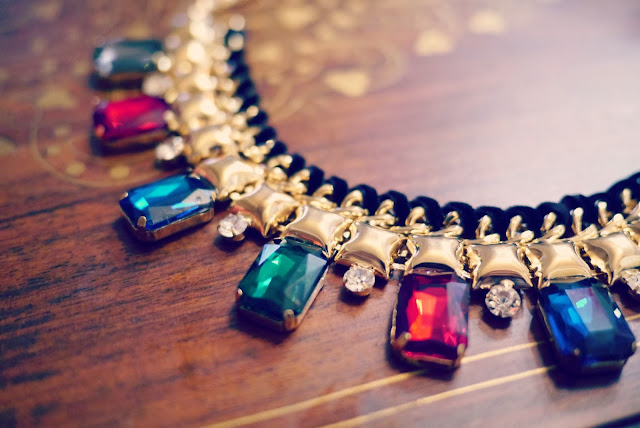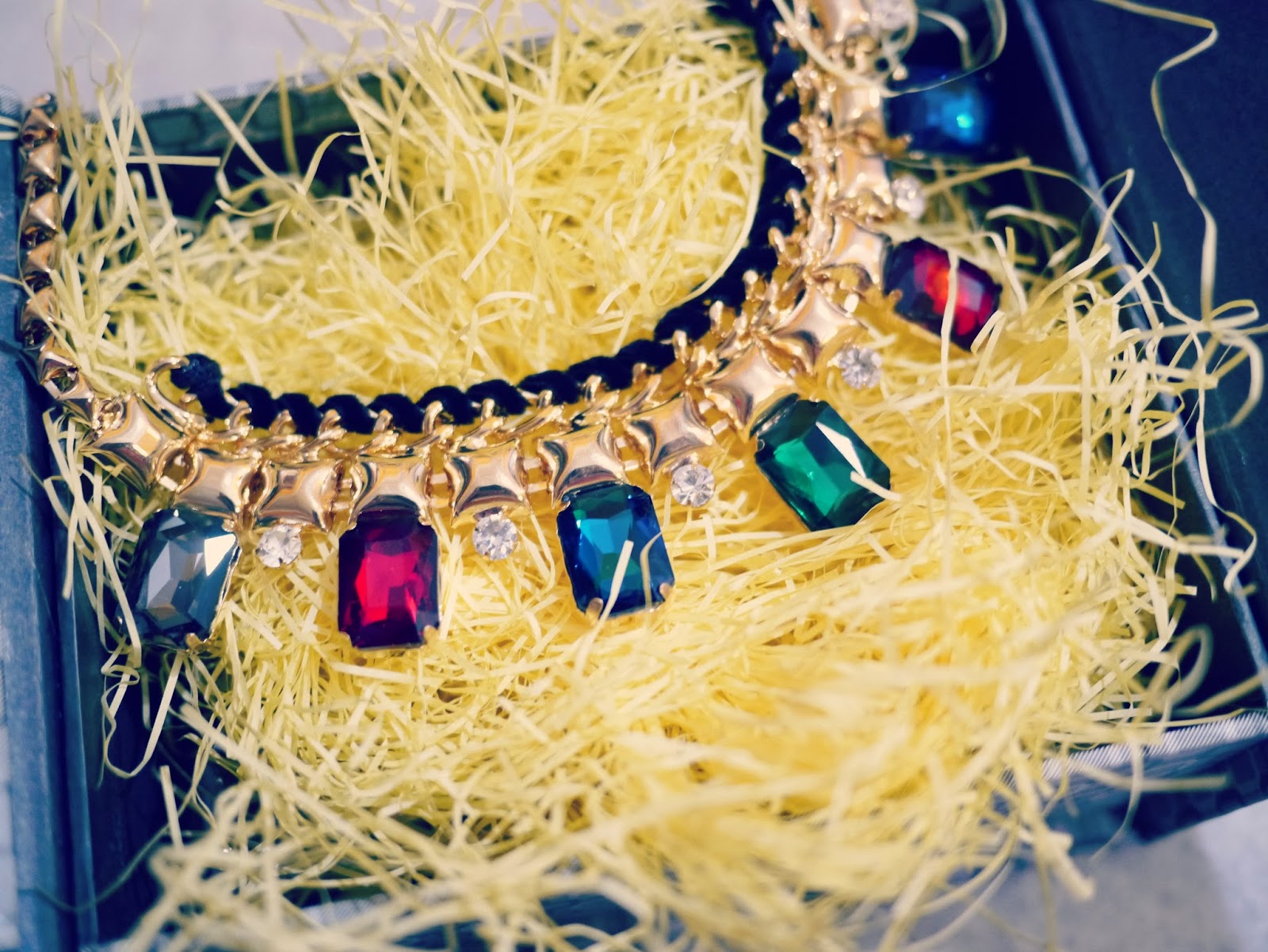 瑰丽的宝石项链我本身也是好欣赏,但是因为我每次都买比较复杂的衣服,所以都戴不了这种较夸张项链呢~