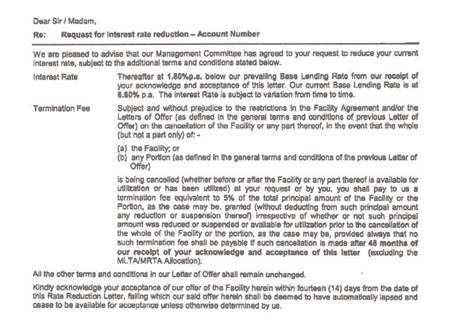 之前某個集團的人一直宣揚說銀行不會那麽好死,即使你苦苦哀求銀行也不會offer 你新的配套減低利息。