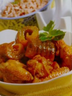 做法:烧热麻油 .放入鸡翼兜抄片刻后倒入调味料和其他