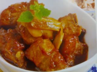 做法:1)把排骨以腌料腌1小时后 ,沾上粟粉过油备用 .