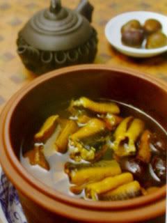 材料:干海参2条 .鸡腿2只 .姜片4片 .葱头仔5粒 .麻油3汤匙