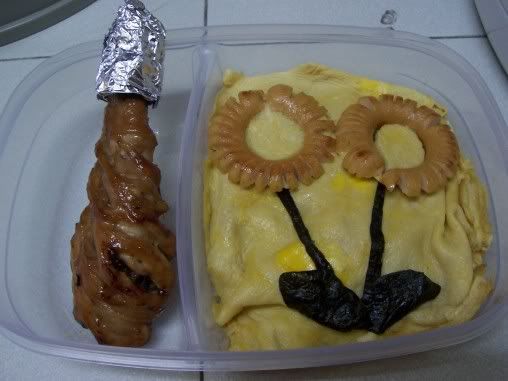 那个便当很丰富,有鸡,有蛋,又有香肠,而且也很吸引人。。。