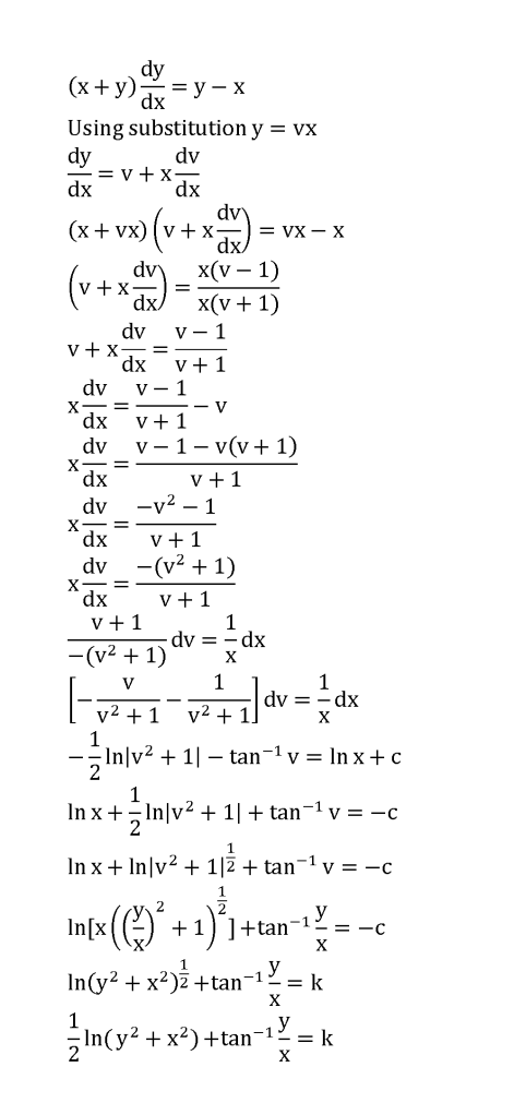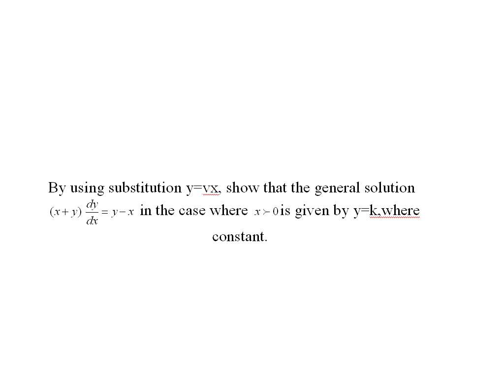 答案应该不可能是y=k,因为如果y=k,然后dy/dx=0 就不等于(y-x)/(x+y) |