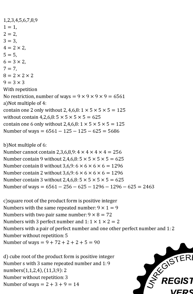9 cards with digit 1,2,3,4,5,6,7,8,9 is chosen one by one.4 card will be selected and the numbers get will be times up(product will form).find the number of ways that