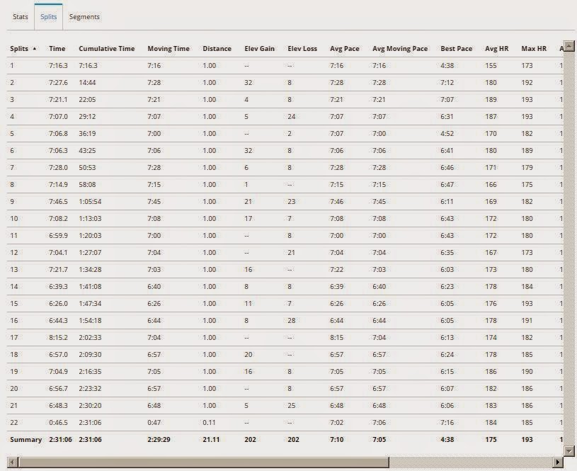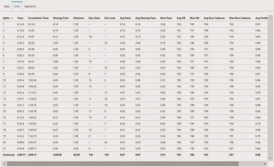 第五圈,也就是最后一圈,我们跑回了顺时的方向。果然身体在用完所有能量的时候会感觉特别累,才18公里而已就想走路回去了,而且这顺时的斜坡虽然斜度不高,但却比较长,跑起来一直埋怨到底还有多远啊。可能是心急要快点完成,所以心跳174-186了,尤其是上坡的时候,感觉累惨了。到了停车场,里数差不多20.80公里,心想就完成半马的距离吧。跑完21.10公里,时间正好是2个小时半,我们都做到了预算的时间了。