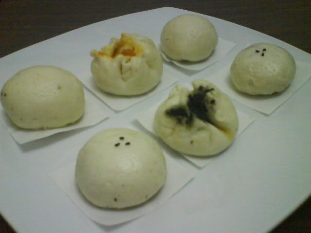 黑金无常包子 这次做也没有很有耐心,包子都捏得很丑,而且还一直漏馅。。。 因为馅是软的,很不容易包。。。气哩。。。包不到的就不管它了,让它开口算了 结论是 还是肉包比较好包好吃 黑色的是黑芝麻馅+金色的是金瓜馅=不是黑白无常 是黑金无常包子