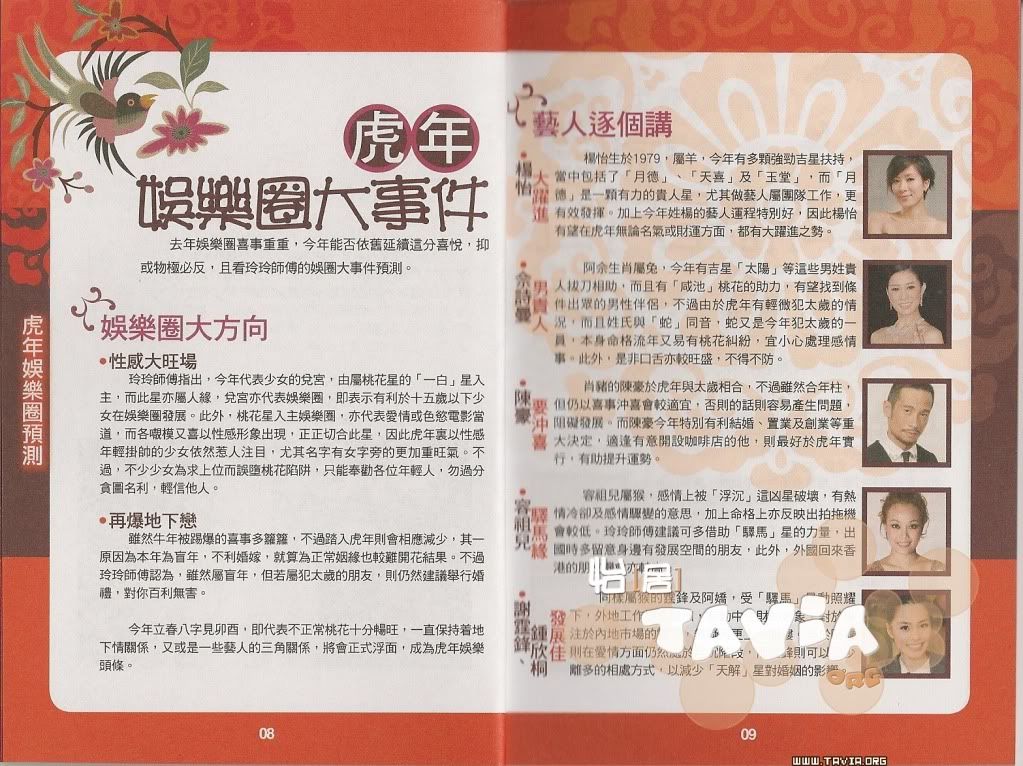 事業在牛年相當得意的楊怡笑言覺得自己的人緣未夠好,因而想在踏入虎年之時購買桃花催旺人緣運,在旁的袁嘉敏則取笑她人緣已經相當好,笑說她應借機催旺「姻緣」才是呢!同場的蘇民峰指桃花不單可催旺姻緣,亦可增強人緣運。