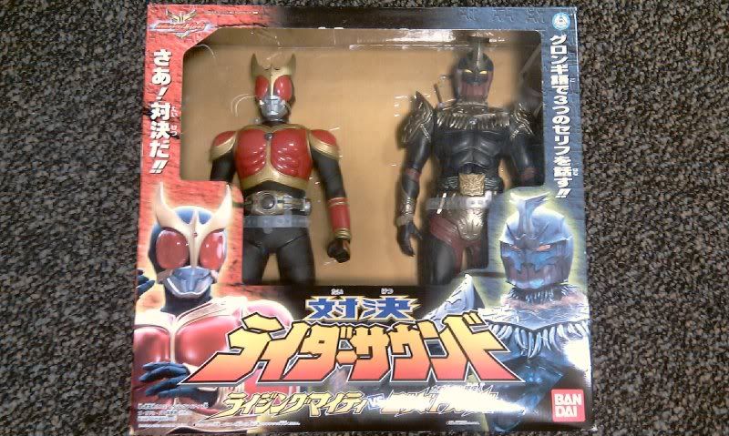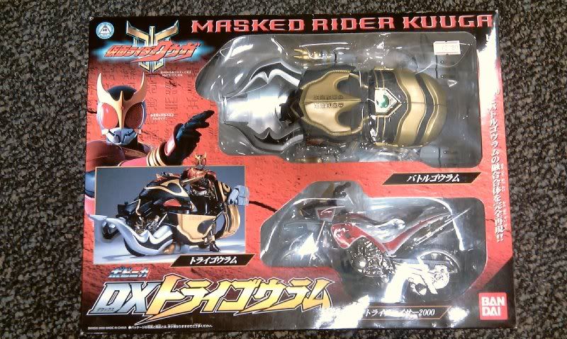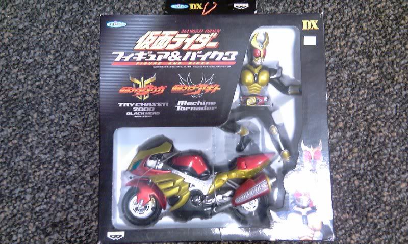 还有另外的一些出乎意料,很大盒的东西...两盒装着变身的 DX Kuuga 电单车(一黑一白),一盒 Banpresto 的 DX Agito Machine Tornador 和一盒超大盒的 12 寸软胶可发声公仔(Kuuga 和 Go-Gadoru-Ba)...