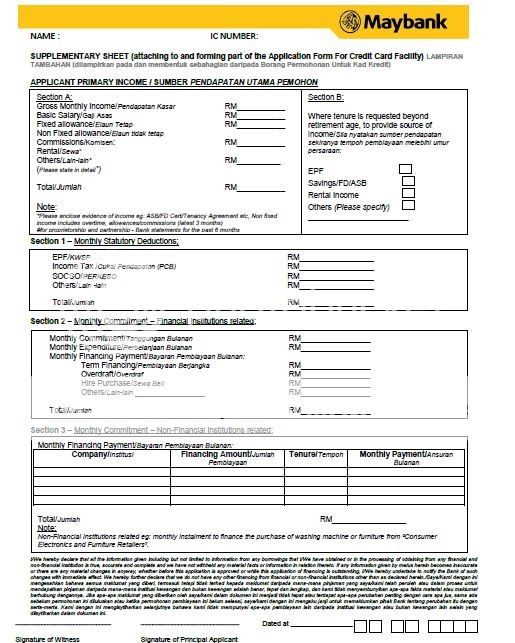各位网友當你要申请UPGRADE你的老虎2卡, 准備提交你的个人收入证明文件時别忘了SUBMIT及填妥此表格(SUPPLEMENTARY SHEET) 。。有很多老虎分行还不知道申请UPGRADE卡要提交这张表格。。。真的是給他們炸到....!!! 我中過招一次,SUBMIT 後等了好久都沒消息原來是少了給了這張表格,申請中PENDING..没有SUPPLEMENTARY SHEET, MAYBANK CARDCENTER 不会处理你的UPGRADE申请。。。!! 看你們誰要申請的可以PM 我. 我有这张表格的 PDF SOFT COPY. 這張表格Maybank2u裏找不到的。。也不是每間老虎分行都有.