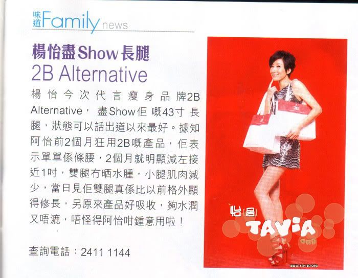 對於近來不斷傳出有藝人向高層送禮,楊怡直言中秋節會送月餅,新年則會派開工利是。她說:「如薛家燕所說,這是中國人的禮儀。」去年樂易玲舉行生日會,楊怡又有否送禮物?她即說:「去年樂小姐生日會,我無參與,因為要開工,樂小姐志在我們開心吓,大家聚埋一齊,她應該唔會收禮物,佢都唔在乎我哋嘅禮物啦!」又有傳某高層想賣車,有些人為討好對方而爭相出價?楊怡說:「如果我搵到錢,我都想賣車,你們(記者)有無興趣?無所謂啦,呢行個個都駕車,所以如果我要放車,都會問身邊的人。」 |
