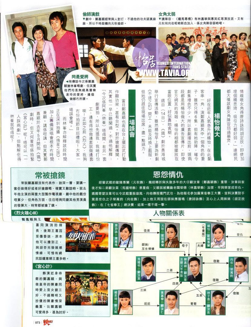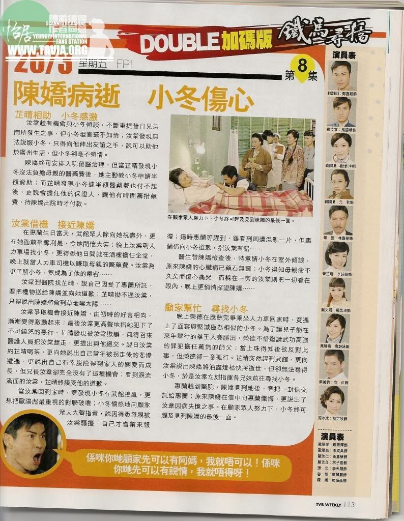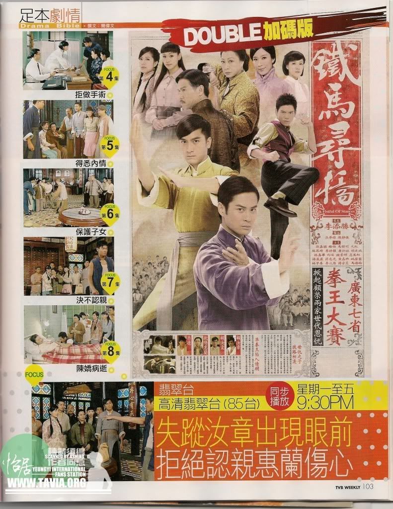 和《巾帼枭雄》相同的幕后班底,使这部剧集多少有点“巾帼”风,像剧中认子的情节,众人声嘶力竭,郑嘉颖涕泣交加,配上煽情乐声,确有走上激情路子的嫌疑,而子女们围着母亲和乐融融,又几乎成了又一部“家好月圆”,导致这部剧好像被割裂开来,暂时还没形成统一风格,只打着“功夫”招牌,在零散剧情里混乱进行,但随着剧情发展,顾荣二家冲突加深,林嘉华、惠英红等人戏份展开来,也许故事真会慷慨激昂起来,只可惜,TVB如今风雨满楼,《铁马寻桥》即便渐入佳境,收视也难有大起色。