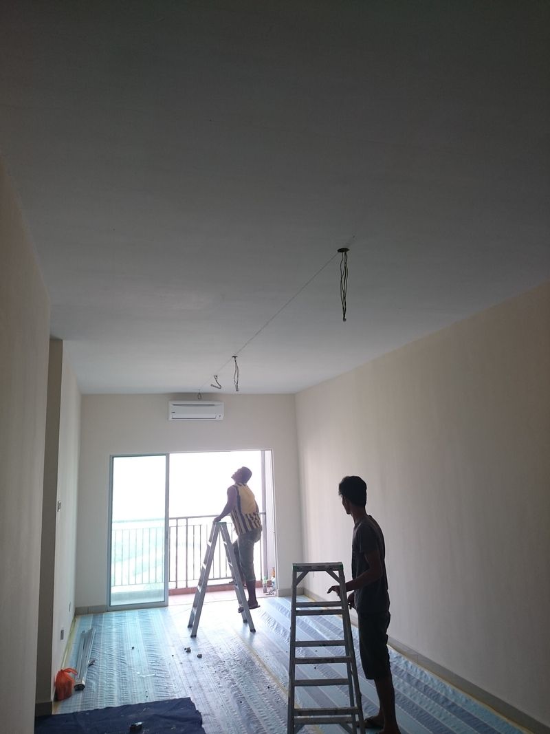 因为风扇52".我的饭桌吊灯本来打算离墙3尺,所以会和风扇打到。或是太靠近怕卷到。所以没办法之下,风扇移位。这我之前survey 装修佬的时候有一位师傅提醒过我了的。所以算是有心理准备的了。唯一要接受的是饭厅的风扇和客厅的没办法连成一线。.gif) |