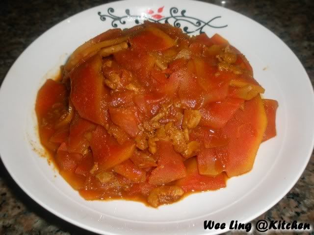 咖哩木瓜, 没有想过木瓜拿来煮,很特别咧。。。味道如何? |