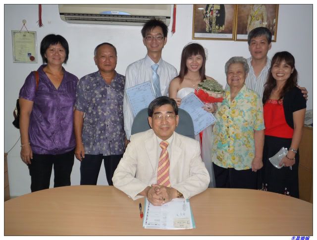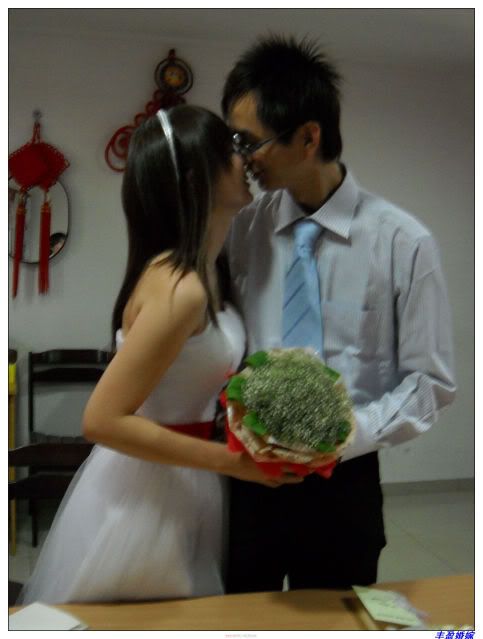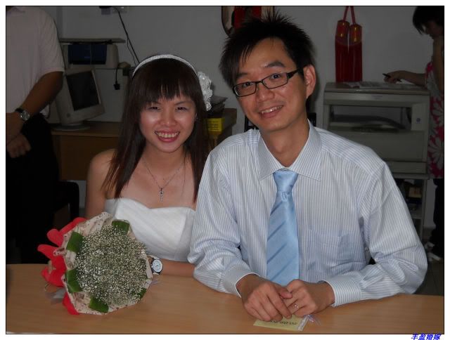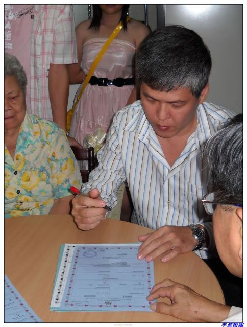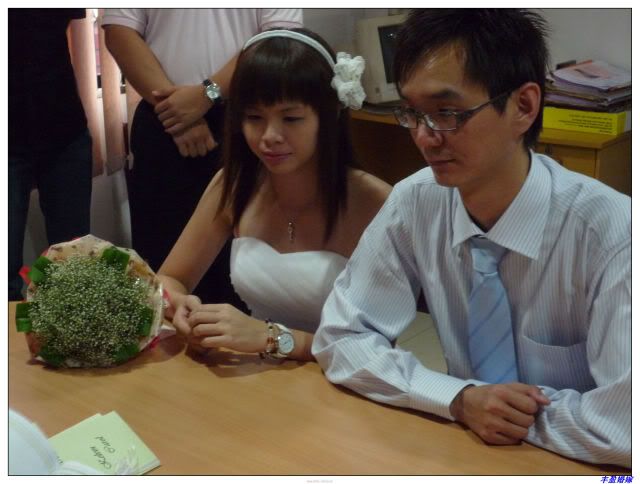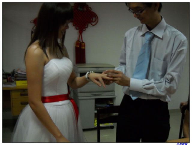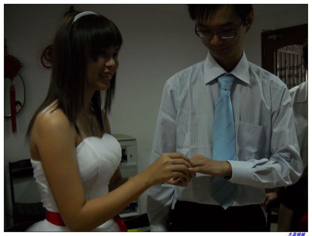 宣誓咯~我在旁边一直偷笑,真的觉得前段的誓词很像死背书! 交换戒指时,我的戒指一时卡在关节处。我和阿丰一直笑,因为我们心里都在想《我肥了!所以才戴不进。》