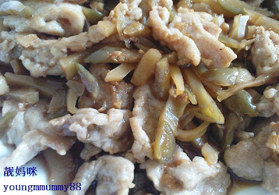 其实是我每次买肉回来,我就会先片好一片片,再调味腌起来,要煮菜就可以随时加进去而不需要一直解冻/调味,既然腌好肉片了,就懒得再切成条了~反正吃起来一样好吃。。。嘻嘻~